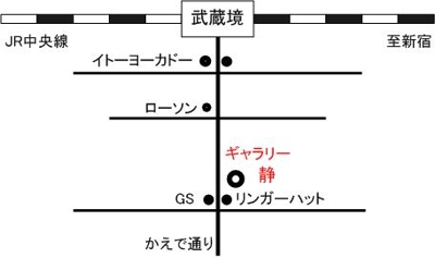 | ◎6月18(金)・19(土)・20(日)日:三鷹市井口「ギャラリー静」 11:00から18:00(最終日は16:00まで) JR武蔵境駅南口下車約1.3km。バス便は、同南口より境92/境93乗車「日本製鋼住宅前」下車。進行方向に100m左側。 |