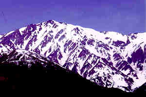 | | 長野オリンピックで日本中を興奮させたジャンプ競技。そのジャンプ競技場のある白馬村は、雪形がその土地の名前となったことで知られています。雪形解説の項には、代表例としてその名があげられる場所でもあります。 |  白馬岳 2932m