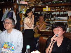 | | 一時は「このまま自然消滅か?」と心配した新宿の"うたごえ"でしたが、うれしいことにボツボツと「復活」の兆し。ピアノの生伴奏、見知らぬ人同志でも声をあわせて歌える、歌った後で打ち解けたおしゃべりが楽しめる、などカラオケにはない一体感やぬくもりが、砂漠のような現代を生きる人の心に沁みるのかもしれませんね。皆さんも是非一度この快感を味わってください。病み付きになること請け合いです。 | |