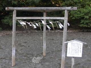 神社の境内にある「磯良恵比須(いそらえびす)」はウロコ状の亀裂を持つ自然石で、横の解説版には『磯良の墓と伝えられる』と書かれています。ネットで調べて見ますと、『民間伝承で磯良は豊玉姫の子供、鵜葺草葺不合命(ウガヤフキアエズノミコト:神武天皇の父)と同一視されている』とありました。この姿が鰐の背中に見立てられて聖地とされたんですね、きっと。