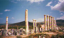 | | デニズリからパムッカレに直行するつもりでしたが、「この近くに素晴らしい遺跡があるんですよ」と朝食時にペンションの人に勧められました。見せられた写真の列柱が素敵だったので、この6時間ツァーに参加することにしました。 |  優美な姿を見せる、アフロディテ神殿